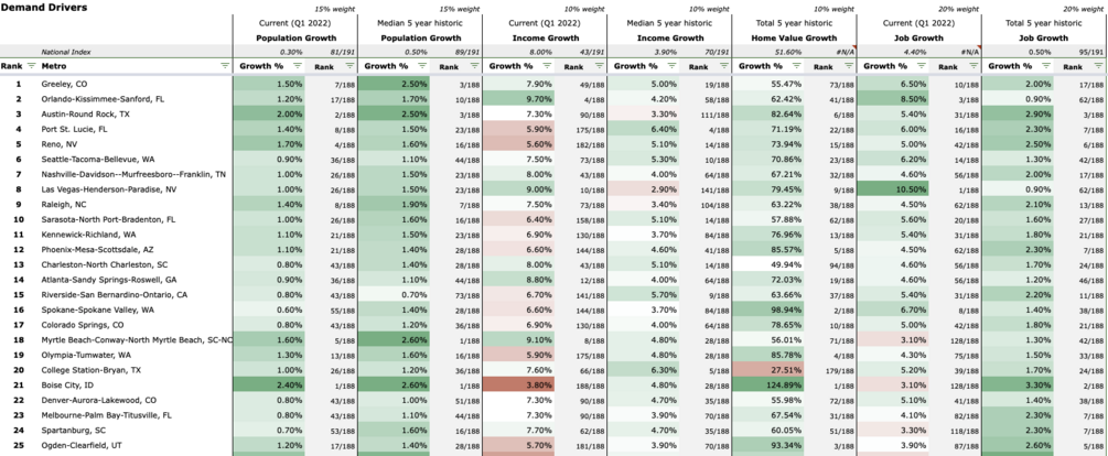 Weighting the below drivers lets us rank these MSAs.